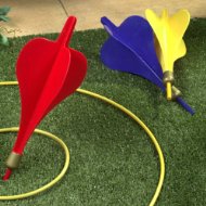 GARDEN DARTS These high quality garden darts have metal tips, weighting them to fly across the garden and land in the lawn. The flights are designed with a grip end to allow you to hold them for throwing. Score points by landing your darts inside the target rings, with higher if you hit the bullseye. You need accuracy and a steady hand to win. Contains 6 playing darts in 3 colours, throwing ring and 2 target rings. |