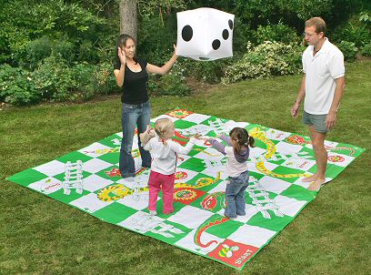 GARDEN SNAKES & LADDERS This giant version of the traditional Snakes and Ladders board game puts you in the heart of the game, where you move up the ladders and down the snakes. There are also some new features for extra fun! The set contains a giant playing mat 3m square (10ft square), 8 pegs and a giant foam dice. Hire this game for just £10 when you book any inflatable or party marquee. |